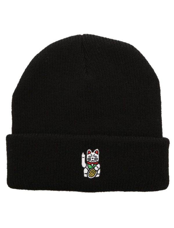 Unsere legendäre Winkekatze hat es sich auf dem IRIEDAILY Bye Bye Beanie gemütlich gemacht. Die zweilagige Feinstrickmütze kommt mit der kleinen gestickten Artwork von GoodMood und mit Logolabel am Umschlag. Der Bye Bye Cat gefällt es auf der Mütze besonders gut, da sie vegan ist und unter der Flagge der Fair Wear Foundation produziert wurde.