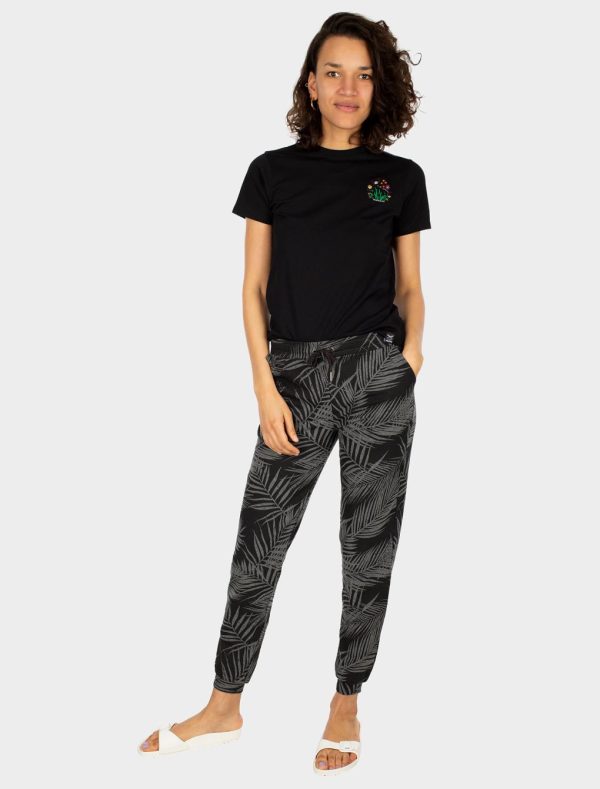 Die IRIEDAILY La Palma Pants zählt definitiv zu unseren Classics! Die Jersey-Hose kommt mit dem zeitlosen La Palma Muster von Künstler GoodMood und lässt sich toll zu schlichten Oberteilen kombinieren. Die schmalen Bündchen an den Beinen und der elastische Hosenbund mit Kordel sorgen für den optimalen Fit. Vegan und fair produziert!