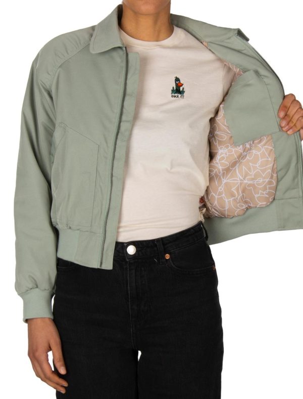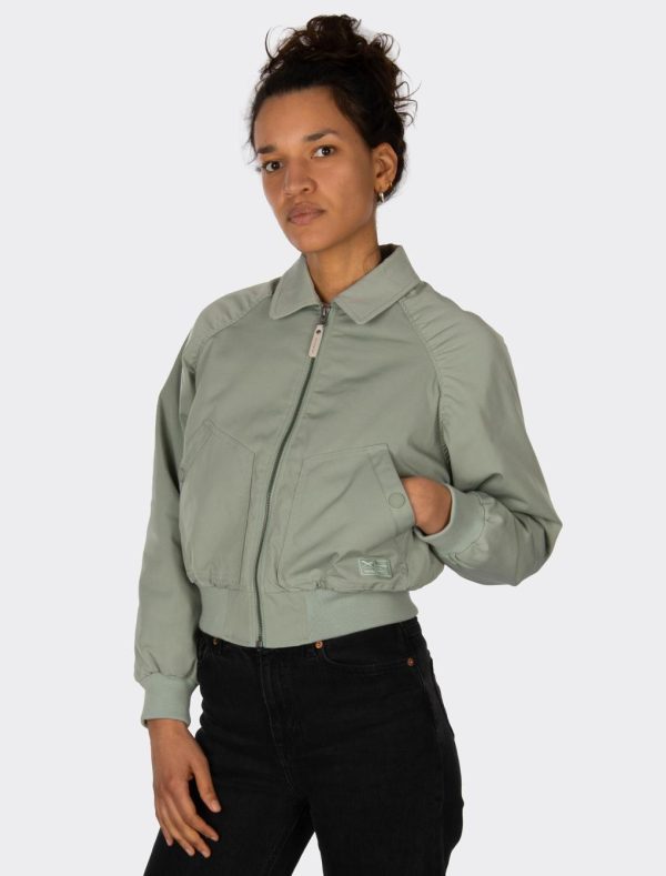 Wir sind in Love mit der IRIEDAILY Lotta Jacket! Die Blouson Jacke im Piloten-Look besteht aus recyceltem Polyester, hat einen großen Kragen und ein gemustertes Innenfutter. Die vegane Jacke ist etwas kürzer und weiter geschnitten aber fittet durch die Bündchen an Ärmeln und Saum trotzdem perfekt. Fair produziert!