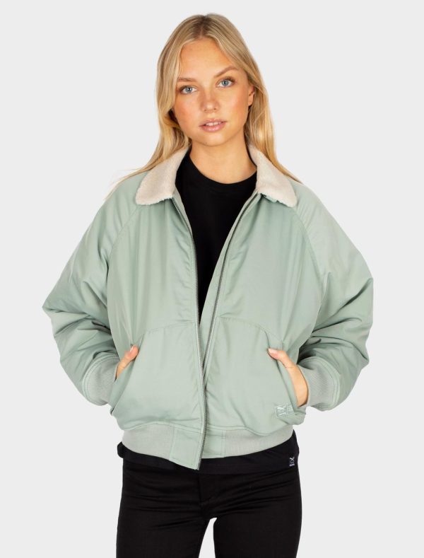 Mit der IRIEDAILY Melly Pilot Jacket bist du super lässig unterwegs! Die leicht wattierte Piloten-Blouson-Jacke hat einen Sherpakragen aus Teddyfleece und seitliche Eingrifftaschen mit Druckknopf. Außerdem ist die Jacke vegan und wurde unter fairen Arbeitsbedingungen produziert.