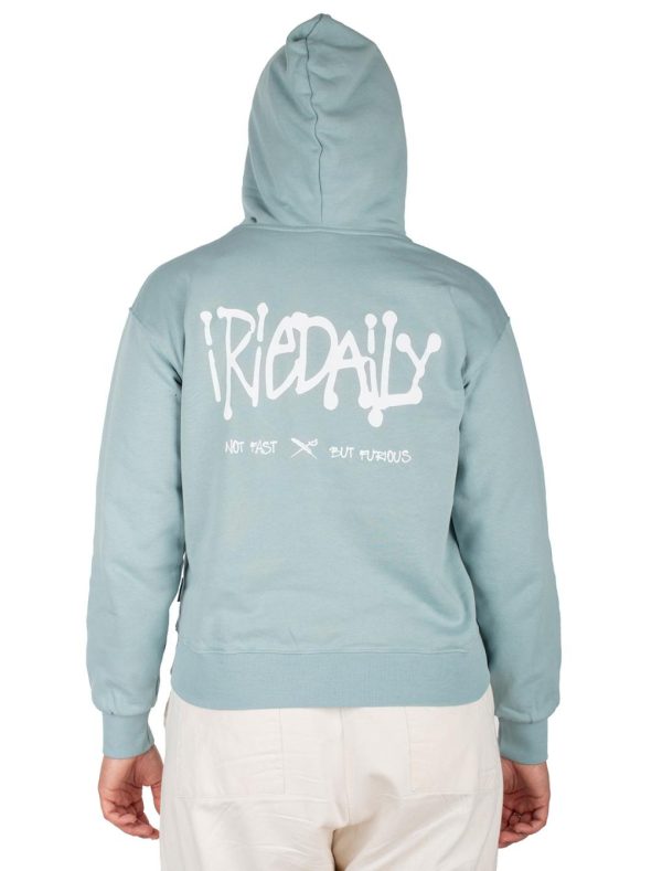 Not fast but furious – das ist das Motto des IRIEDAILY But Furious Hoodies! Der vegane Kapuzenpullover kommt mit kleinem Flag Logo vorn und großem IRIEDAILY Lettering hinten. Hergestellt wurde der Hoodie aus Bio-Baumwolle in Portugal unter der Flagge der Fair Wear Foundation.