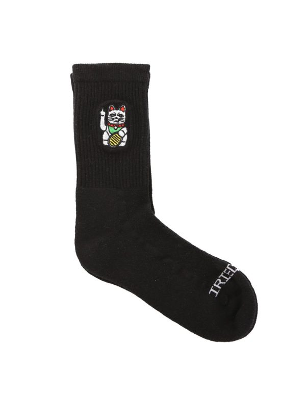 Tennissocken sind schon längst wieder voll im Trend. Wir haben der klassischen Sportsocke allerdings noch ein kleines Upgrade hinzugefügt: Unsere Bye Bye Cat! Die Artwork von GoodMood befindet sich als kleine Stickerei an der Außenseite. Außerdem gibt es ein IRIEDAILY Lettering auf dem Spann. Vegan und hergestellt in Portugal!