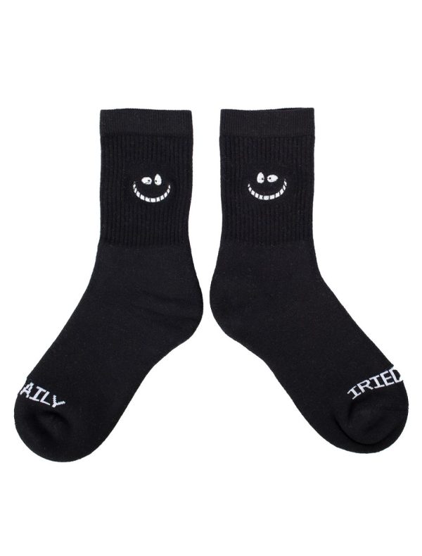 Verschmitztes Lächeln auf den Socken? Kein Problem mit den IRIEDAILY Grin Cat Socks! Die klassischen Sportsocken kommen mit IRIEDAILY-Lettering am Zehenteil und Grinse-Artwork am Schaft. Hergestellt wurden die Socken in Portugal und es gibt sie in den Größen S/M= EU 39-42 und L/XL = 43-46.