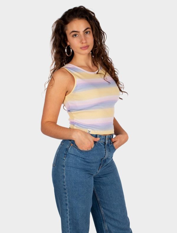 Bei heißen Temperaturen wirst du das IRIEDAILY Mimie Tank lieben! Das ärmellose Top aus gestreiften und gerippten Jersey besteht aus Bio-Baumwolle und ist etwas enger und kürzer geschnitten. Außerdem ist es vegan und in Portugal produziert worden.