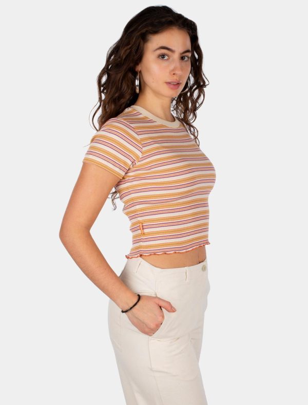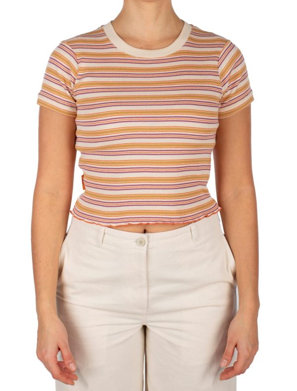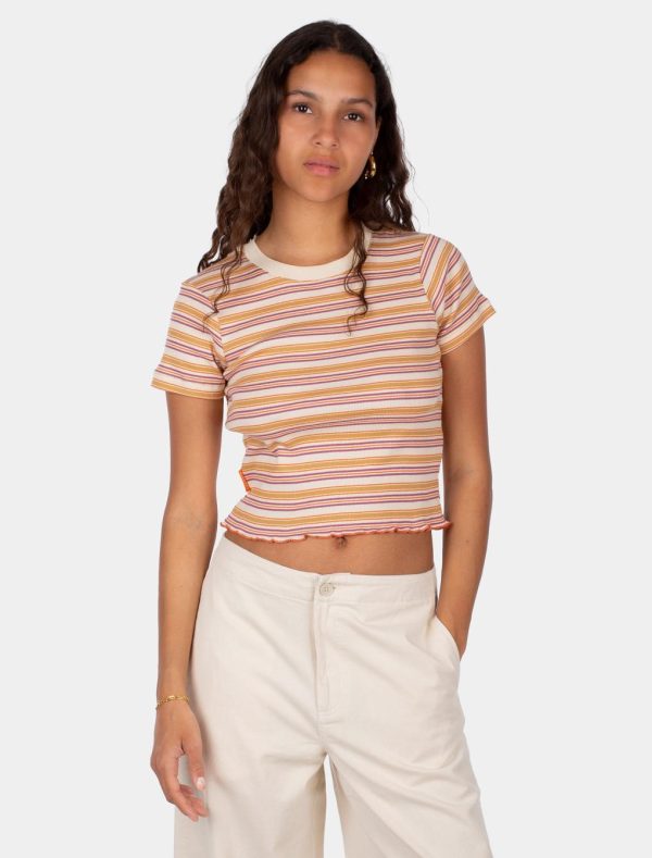 Das IRIEDAILY Pippa Tee ist ein schmales, kurz geschnittenes T-Shirt im lässigen Streifenlook. Die gerippte Bio-Baumwolle sorgt für den Slim Fit. Hergestellt wurde das Oberteil unter fairen Arbeitsbedingungen in Portugal.