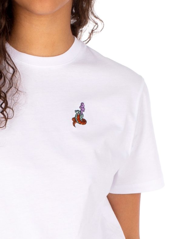 Die wohl coolste Schlange der Welt befindet sich als kleine Stickerei auf dem veganen IRIEDAILY Snaky Tee. Die Artwork kommt von der britischen Illustratorin Kate Prior, das fair produzierte T-Shirt aus Bio-Baumwolle von uns.